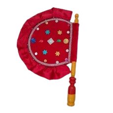 A pakhi is a traditional handheld fan, often made from feathers or palm leaves, used to create a cooling breeze. It is commonly used in many cultures for personal comfort, especially in hot weather, and is sometimes used in religious or ceremonial settings for its symbolic and functional purposes.